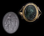 Bague en or et intaille romaine sur jaspe rouge. Faustine la Jeune.