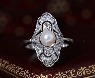 Bague ancienne Art Déco en or gris sertie de diamants et d'une perle.