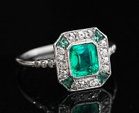 Bague ancienne Art Déco, brillants et émeraude de Colombie.