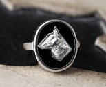 Bague ancienne Art Déco, or, onyx et diamant taillé en tête de chien.