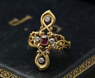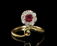 Bague ancienne « marquise » en or, diamants et rubis par Kalmanovich.