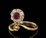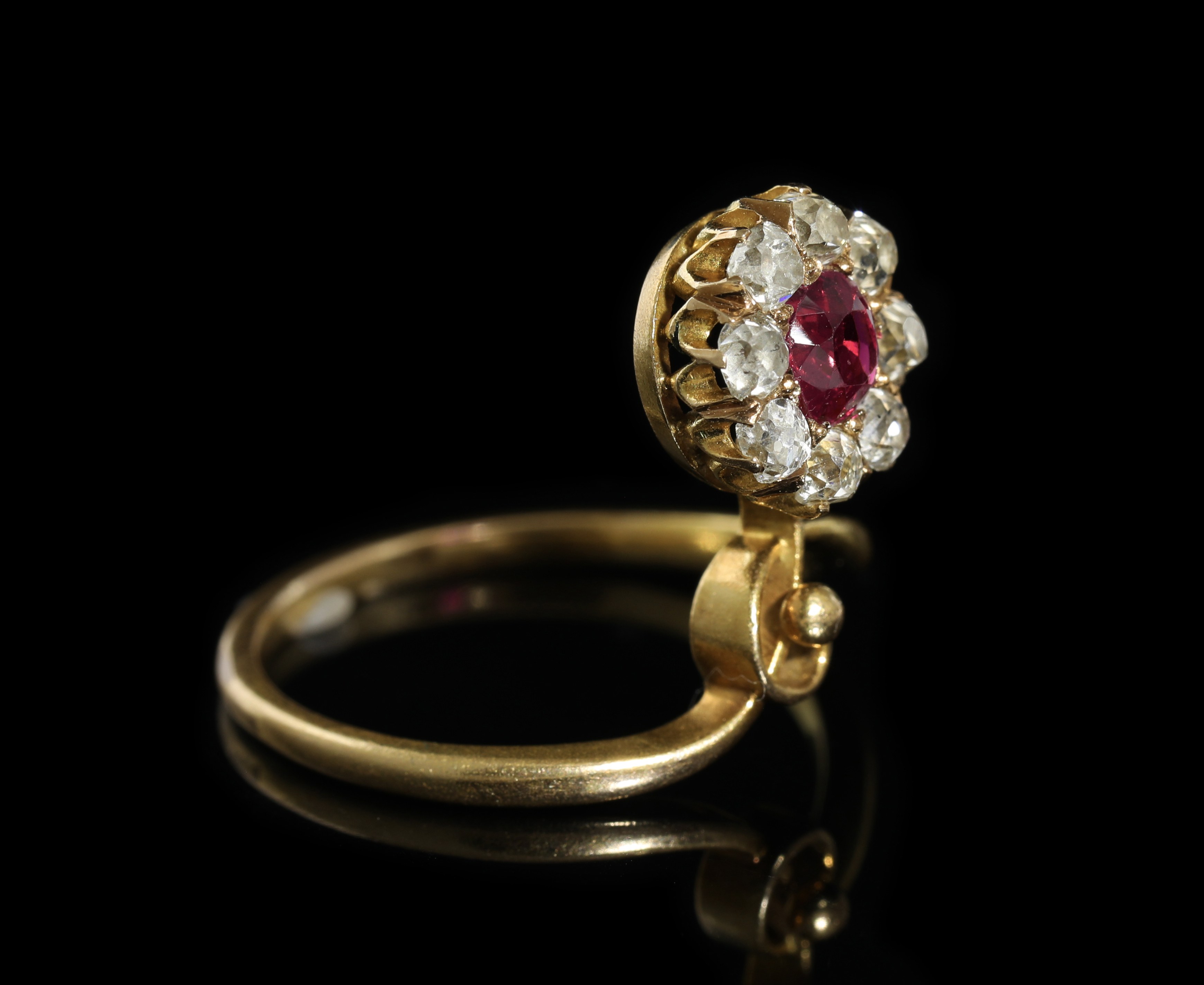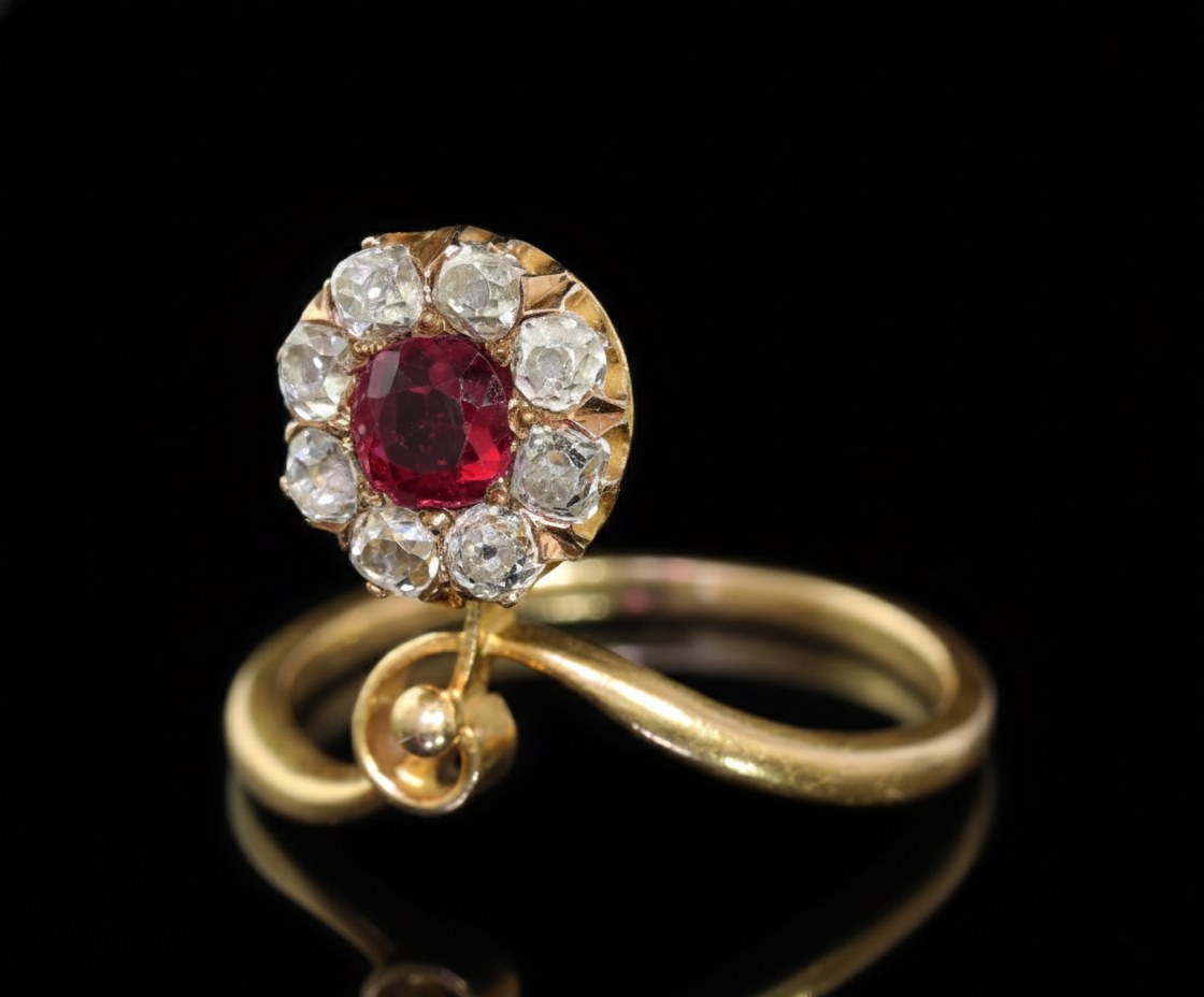 Bague « fleur » Art Nouveau en or, diamants et rubis birman. Autriche, début 20e siècle.