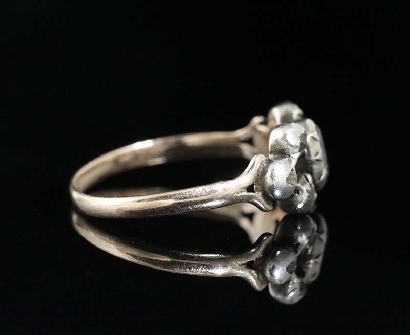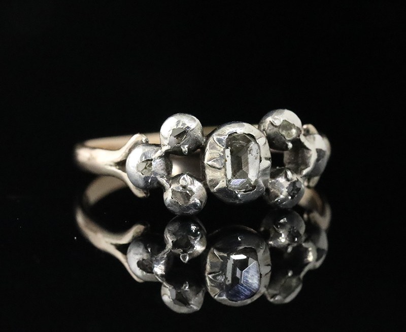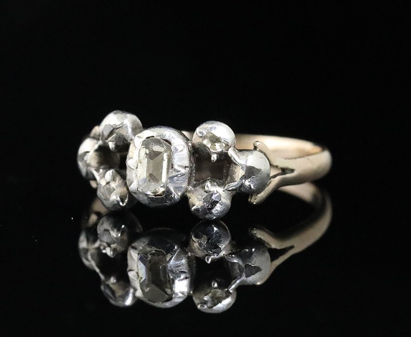 Bague ancienne en or, argent et diamants du 18e siècle.