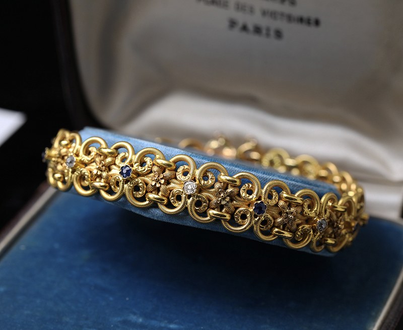 Bracelet ancien en or, diamants et saphirs du 19e siècle.