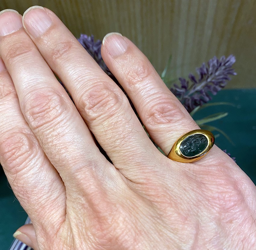 Intaille romaine en prase montée en bague or. Fortuna-Isis.