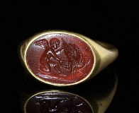 Bague romaine en or et intaille sur cornaline. Olympe. 2e siècle.