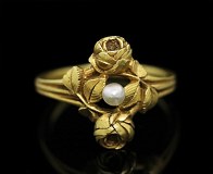 Bague ancienne Art Nouveau or et perle fine, « deux roses »