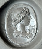 Bague romaine en or et intaille en pâte de verre. Diane. 3e siècle.