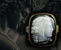 Bague d’homme en or sertie d’un camée en onyx au profil de Méduse.