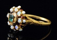 Bague ancienne en or, opale et émeraude de style néo-gothique.