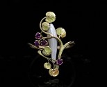 Bague florale Art Nouveau or, émail, rubis et perle, par Henri Dubret.