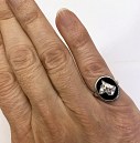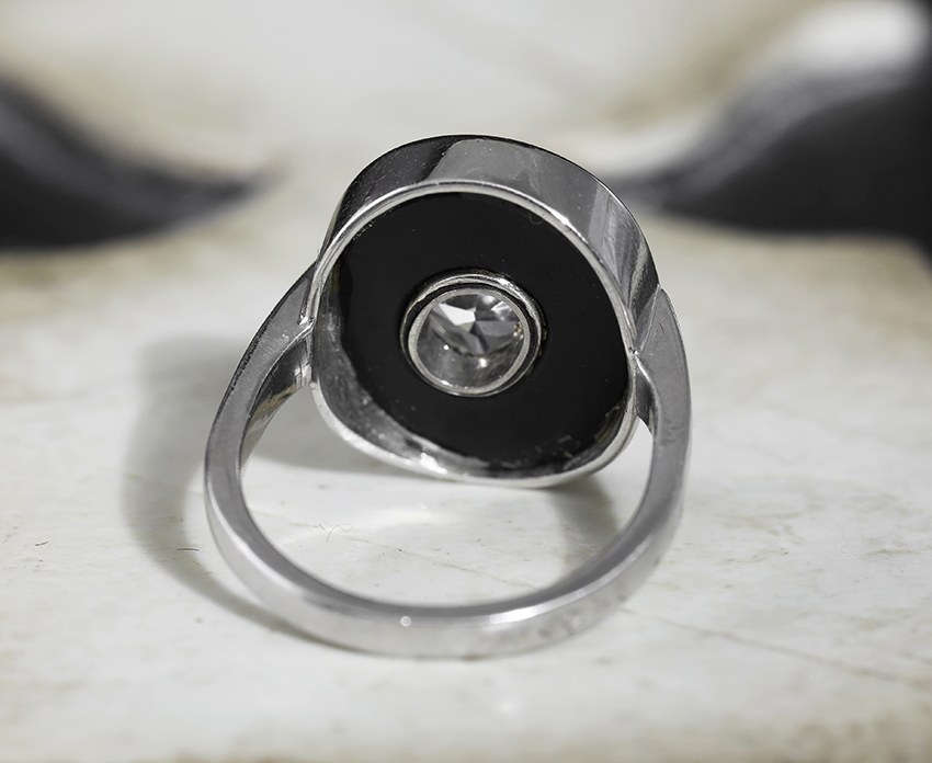 Bague ancienne Art Déco, or, onyx et diamant taillé en tête de chien.