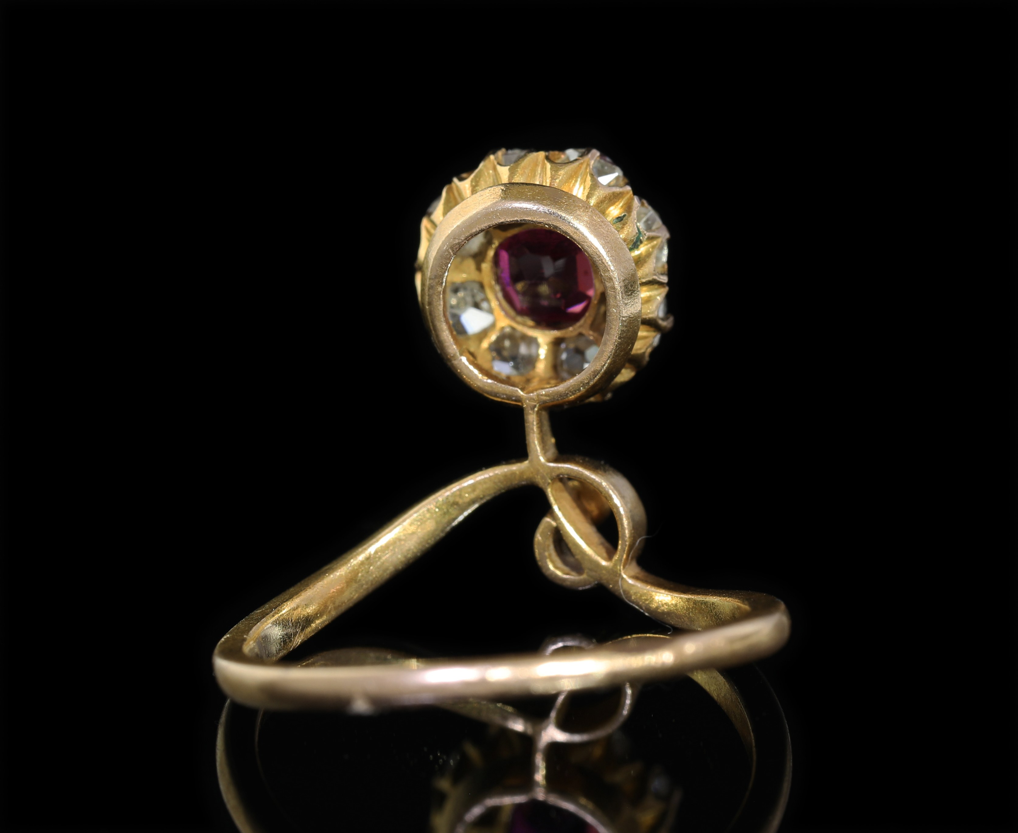 Bague « fleur » Art Nouveau en or, diamants et rubis birman. Autriche, début 20e siècle.