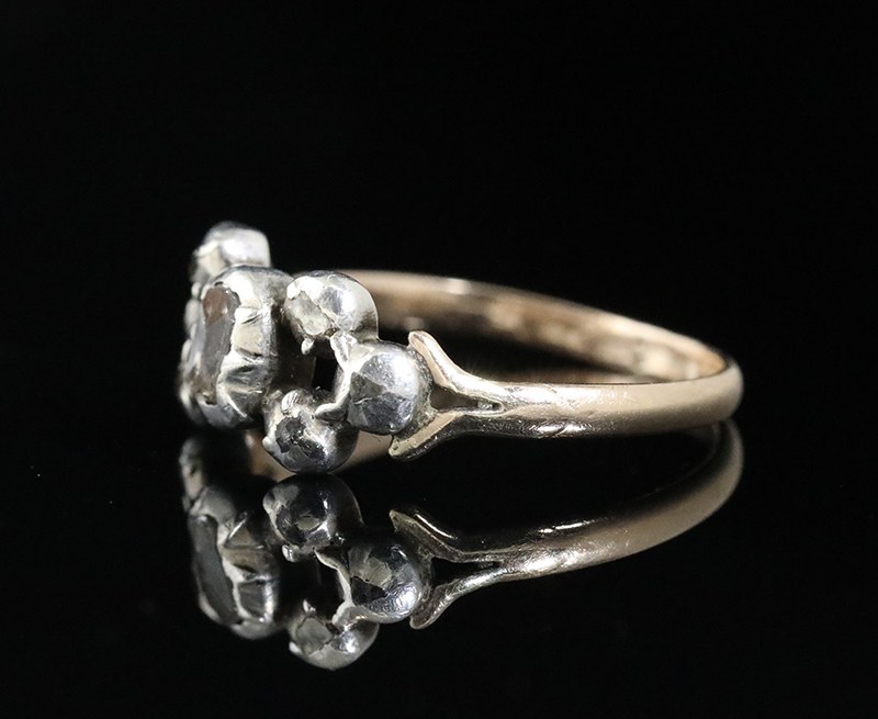 Bague ancienne en or, argent et diamants du 18e siècle.