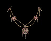 Collier ancien du 19e siècle en or, rubis, diamants et émail noir.