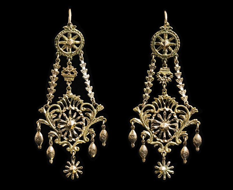 Paire de pendants d’oreille en or, Sicile ou Naples, début du 19e siècle.