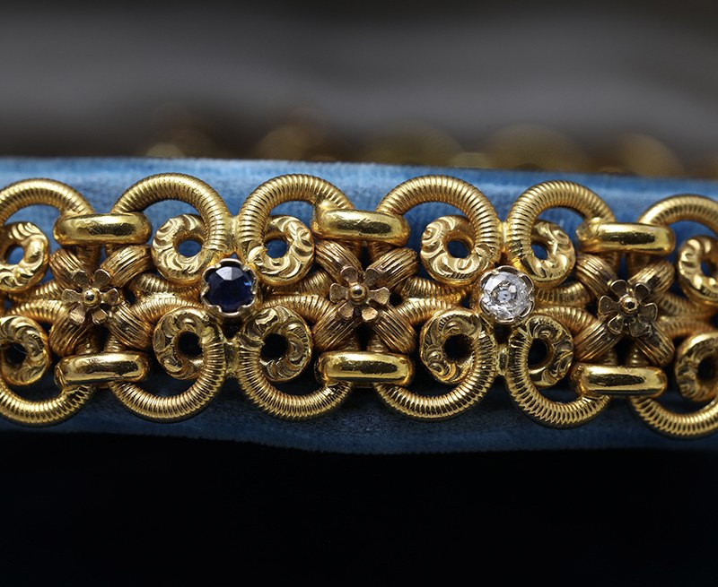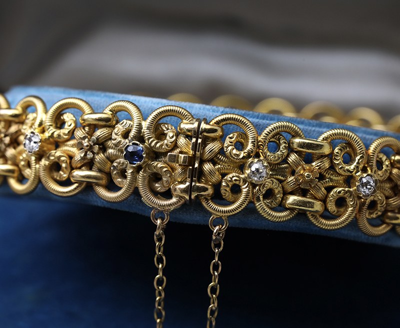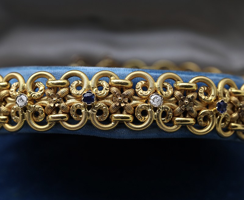 Bracelet ancien en or, diamants et saphirs du 19e siècle.