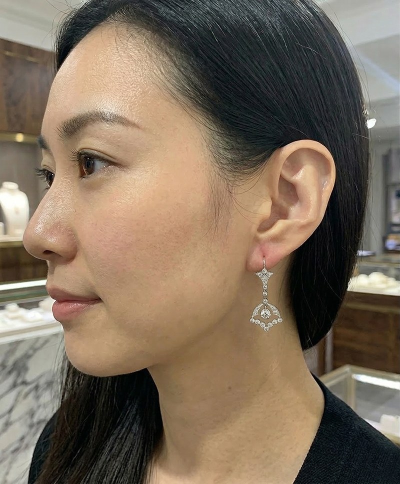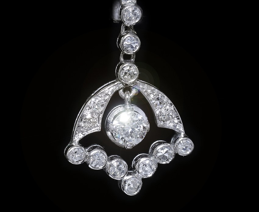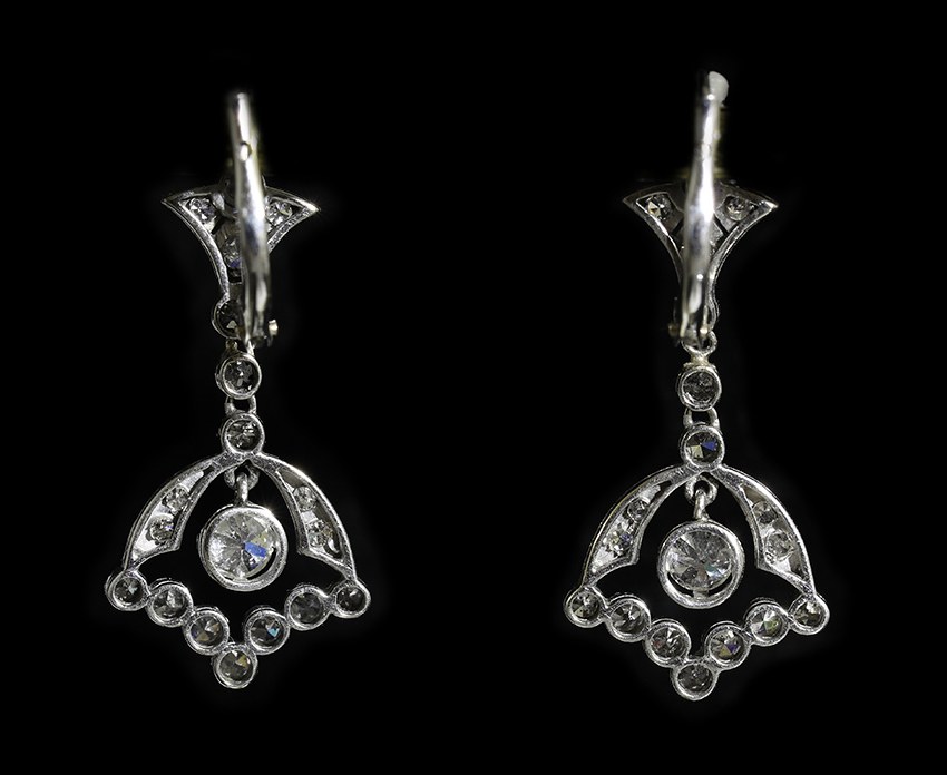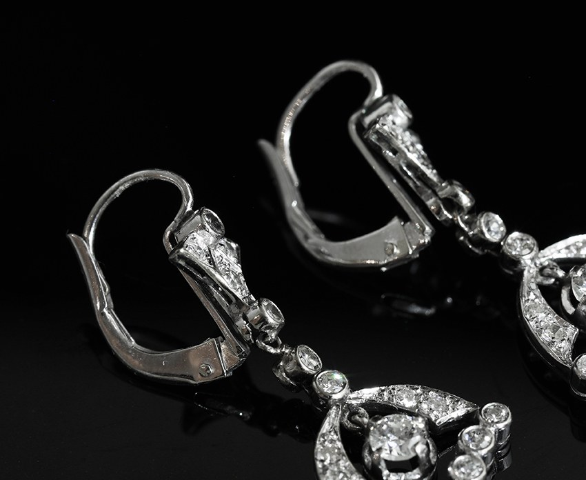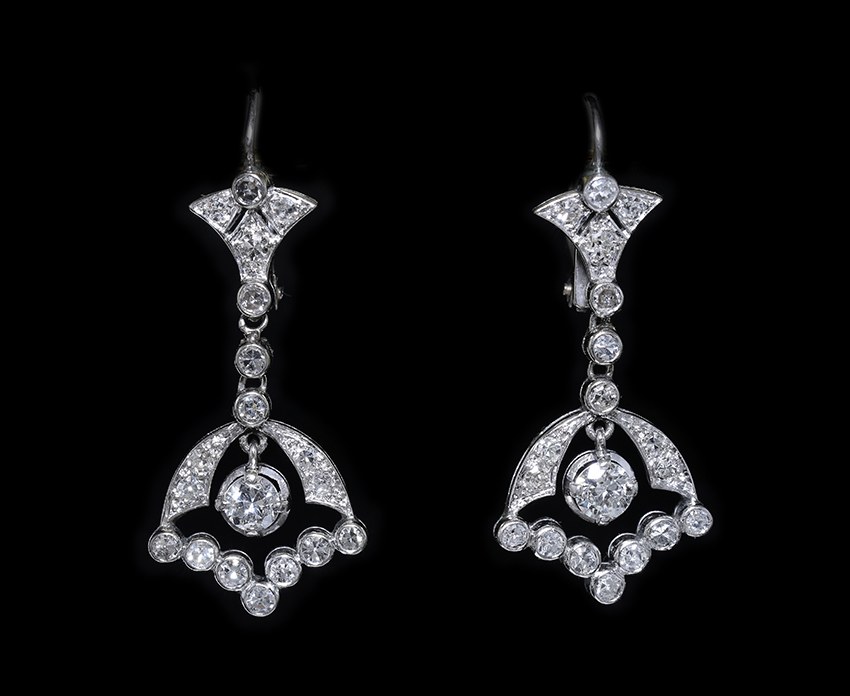 Paire de pendants d’oreille Art Déco en platine et diamants.
