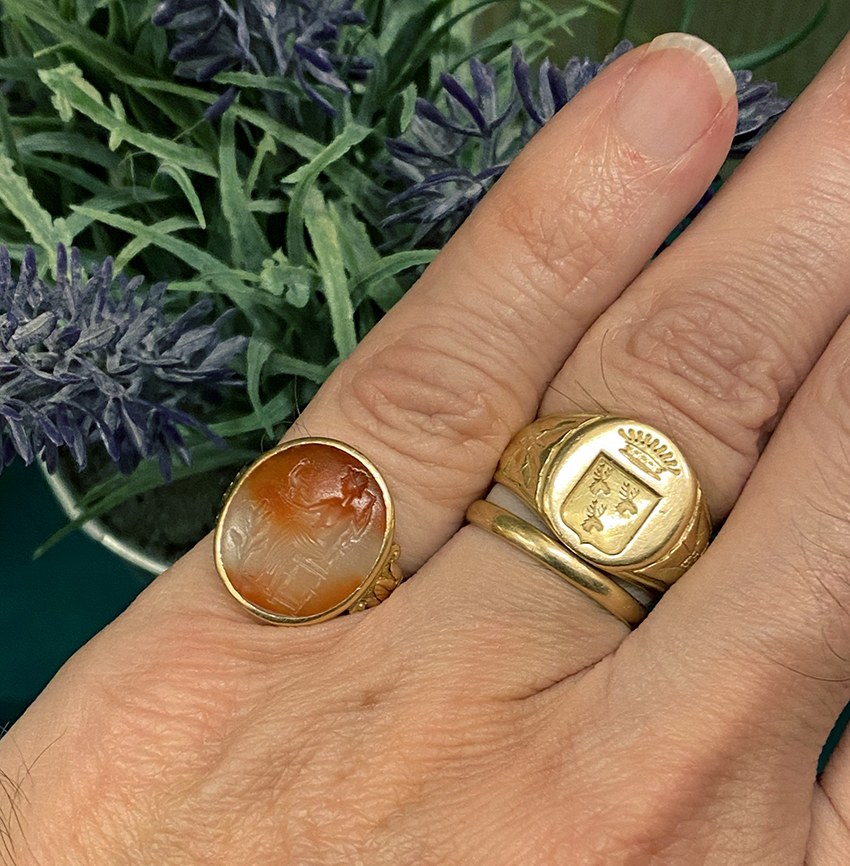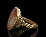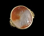 Bague en or et intaille antique sur calcédoine bicolore. Jupiter.