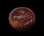 Rare intaille ovale en cornaline rouge-brune gravée d’un superbe sujet : le héros Hercule combattant le lion de Némée, un de ses plus fameux travaux. Un sujet rare et recherché.Il s’agit d’une intaille magnifiquement travaillée dans le style dit « campanien », datant de l’époque républicaine dont si peu de pièces de glyptique sont parvenues jusqu’à nous.