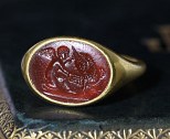 Bague en or et intaille romaine sur cornaline. Cupidon et l’aigle de Jupiter.